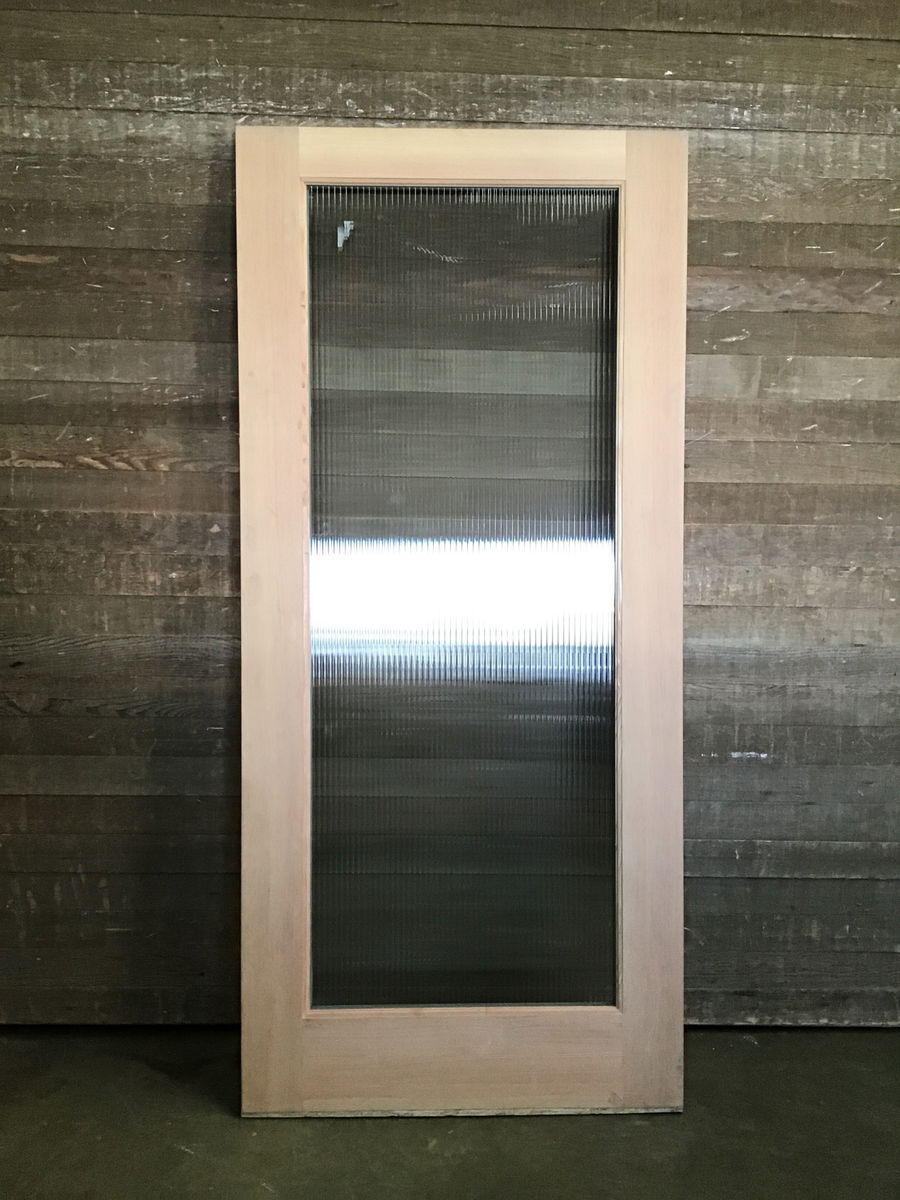 Beautiful fir/hem CVG exterior french door with obscured fluted style glass. Has some small cosmetic scratches and marks that will be shown in photos.