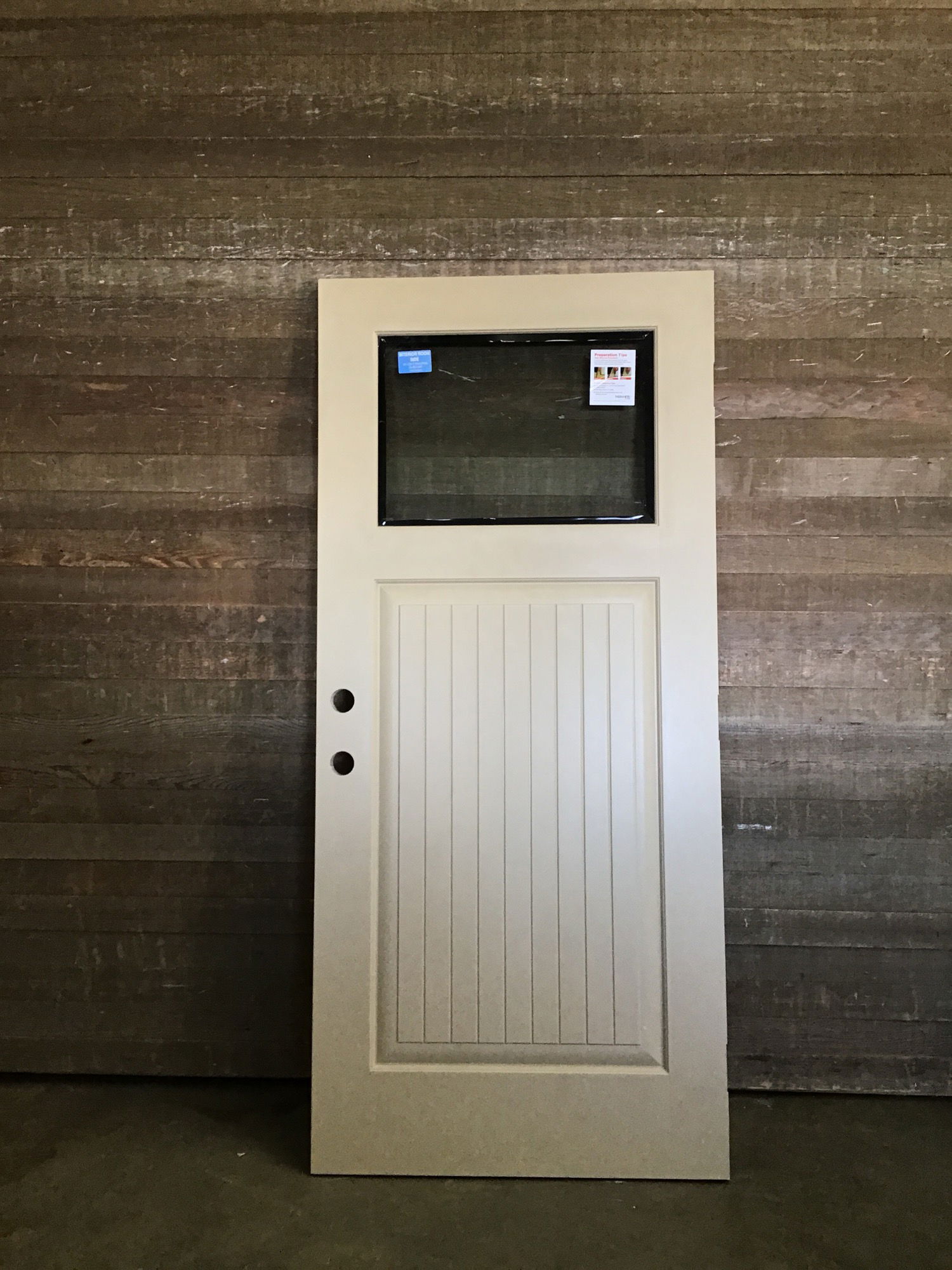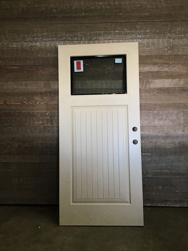 Fiberglass clad door with thermpane lite at the top. In great looking shape just has some damage that will be shown in photos.