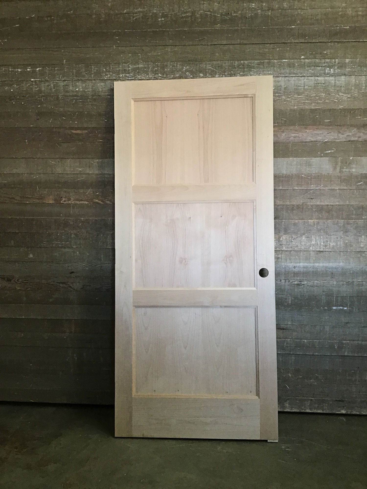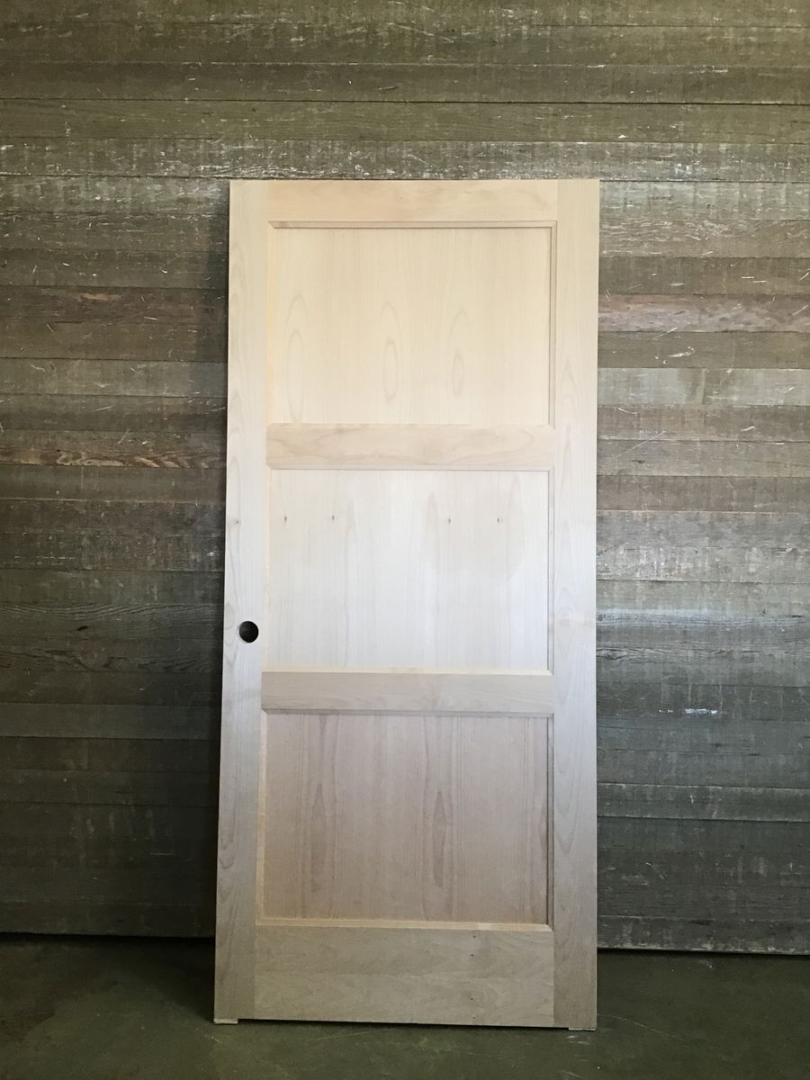 Fantastic looking raw wood interior 3 panel door. Never installed before, may have some small cosmetic damage, will be shown in photos.