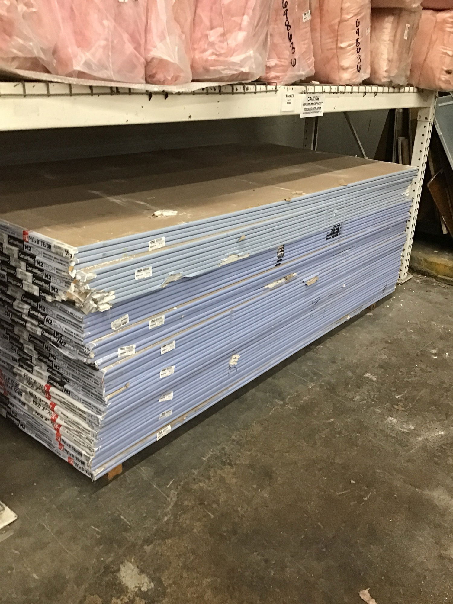 5/8" 4'x8' moisture and mold resistant gypsum board by CertainTeed. Condition for each sheet varies with some minor corner damage here and there. Overall in good condition but hurry for the best selection. This is a bulk item. No holds please.