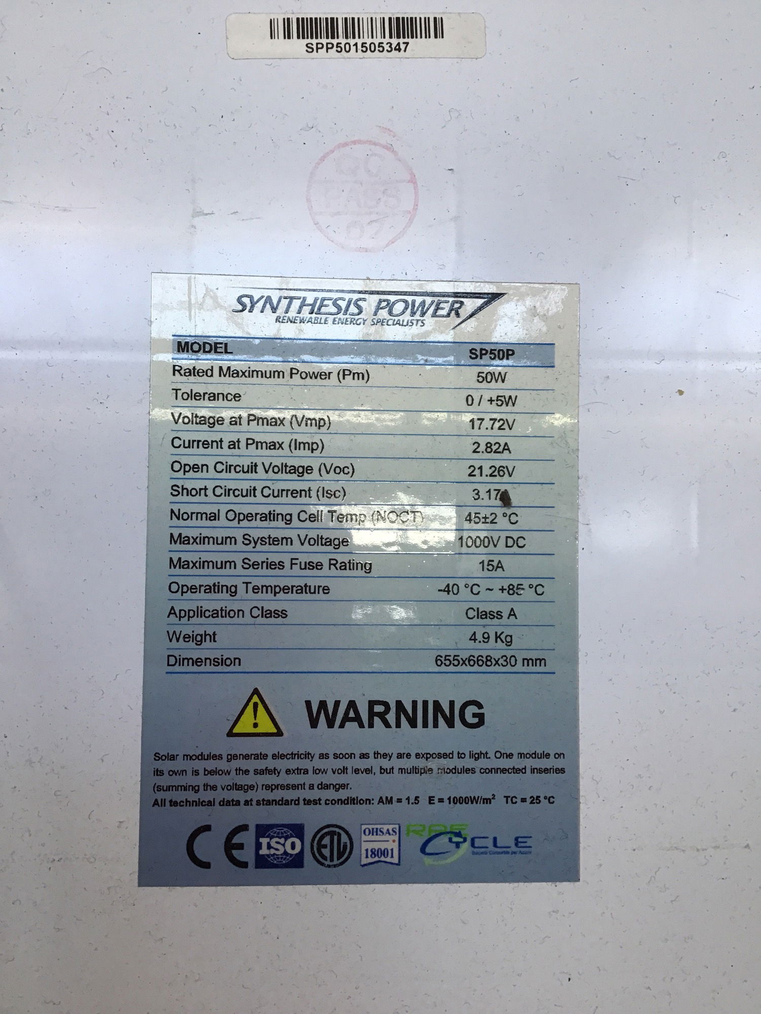Small 50 watt solar panel, sold untested but looks to be in good shape.