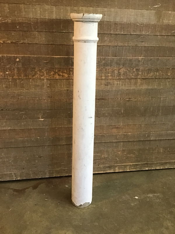 White painted vintage fir column with a cap. Some paint chipping along the top and bottom.
