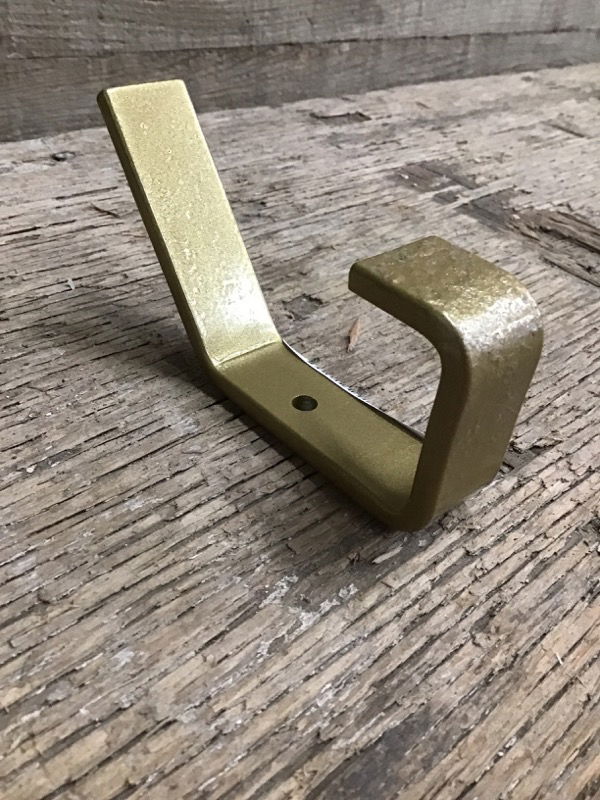 Single powdercoated (gold) coat hook made by a local family operation. Photo may be representational. This is a bulk item. No holds please.