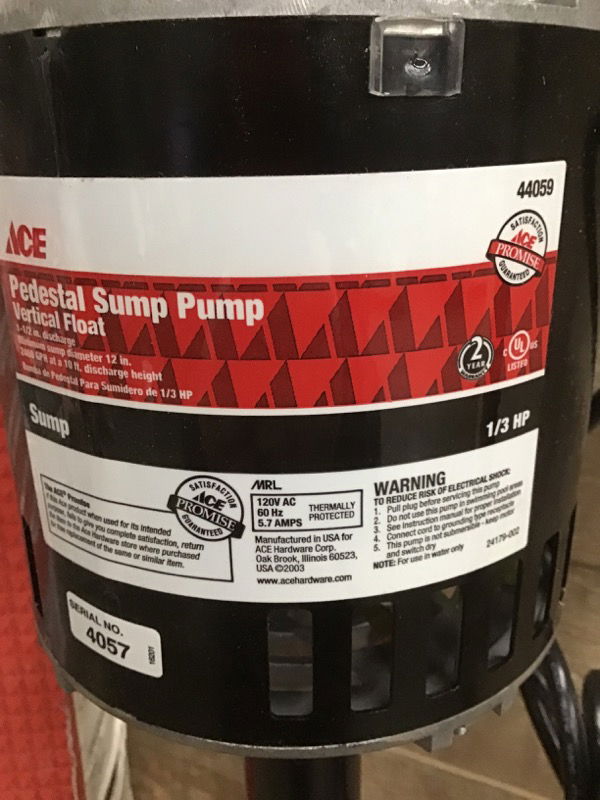 New in box, Ace Hardware 44059, 1/3 HP pedestal sump pump. Looks like these run $89 new.