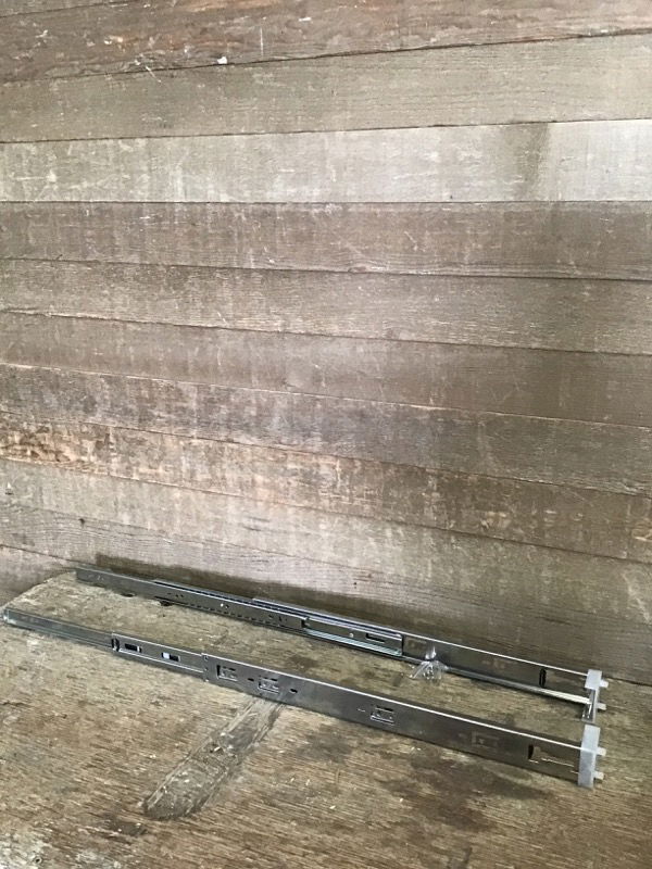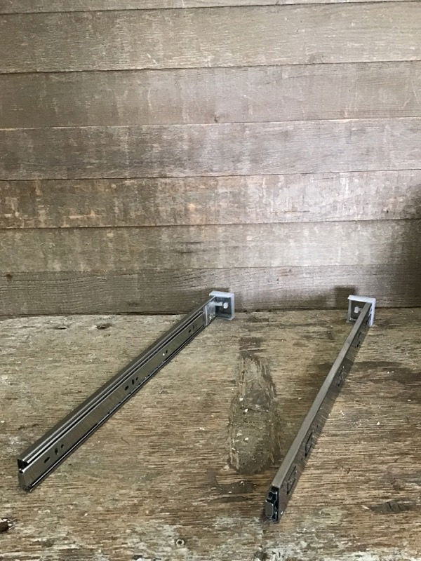 Generic, builder grade 21" full extension, side mount cabinet drawer glide pair. Deep enough for kitchen cabinets. Never used or installed, still in package and includes screws. Sold as a pair. We have many, bulk item, no holds, first come first serve.