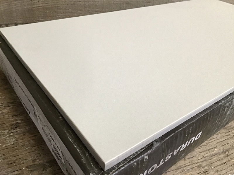 Porcelain floor tile from Durastone comes in a matte soft beige finish. 6 tiles a box; 12 SF per box. In excellent condition. This is a bulk item—boxes may not be placed on hold.