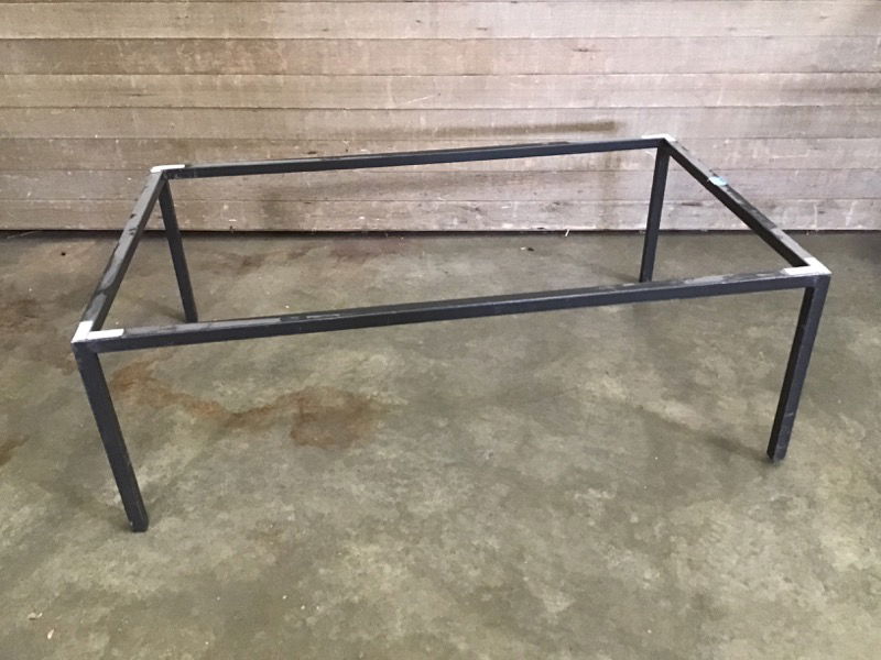 This 48" long welded steel coffee table base is just waiting for your next DIY project. Pick up a butcher block or a live edge slab to make your own custom table. There are currently no holes for hardware, so you'll need to drill some to bolt to your table to.