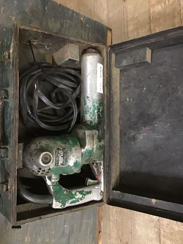 Vintage Black & Decker aluminum body 3/4" demo hammer plugged in and appeared functional at time of testing. Comes in original wood and metal case.