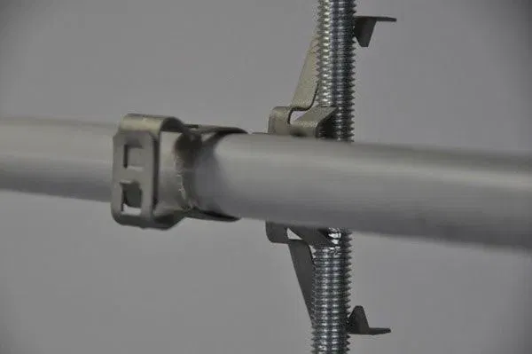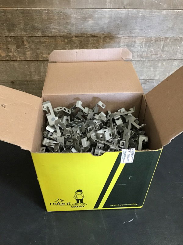 This is a box of ~100 NVent Caddy 4Z34812M Snap Close Conduit to Rod/Wire Clips 1/2"-3/4" EMT 0.71–1.18"OD 1/4" Rod #12 Wire. They are meant to quickly attach conduit, cable or other items to threaded rods securely, quickly and conveniently. These have a static load rating of 20Lbs so they offer a great range of applications. Could be used to secure hanging plants, hosing, temporary wiring or extension cables on jobsites or workshops where having a secure and easily removable connection is important and much more.