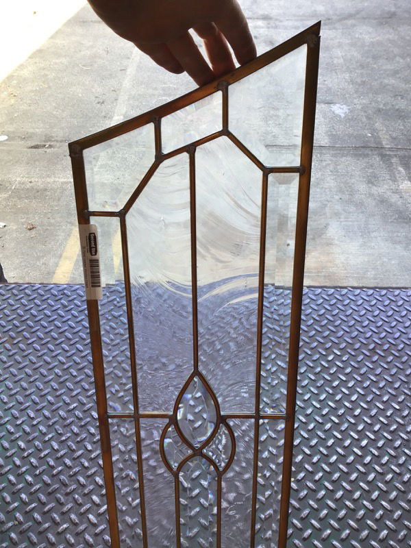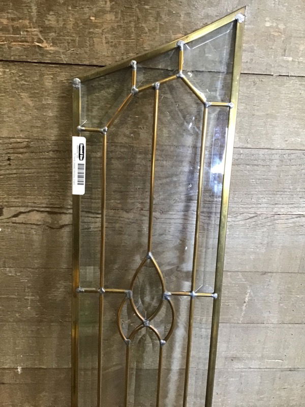 Brass leaded glass insert featuring 35 wavy and beveled glass panes! Curves up on one side and can be paired with item number 634436.