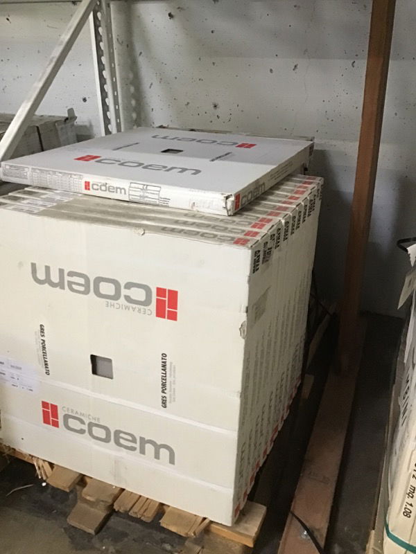 Attractive 24x24 tile ribbed and in the grey family. Seems to have some non slip properties. 4 to a box, 16 sq ft/ box. Priced by the box. Sorry no holds on this item.