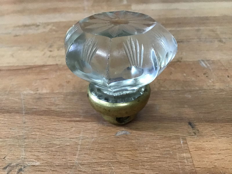 Vintage octagon highly etched glass door knob with brass bezel. Similar knob retails for $75.