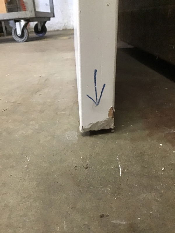 Primed masonite door with one slightly crushed bottom corner.
