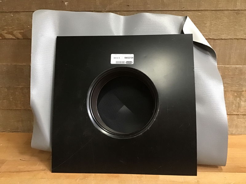 Gray roofing vent with mat. Measurements do not include the mat. Diameter of pipe area is about 7.5" in diameter. Looks like they've never been installed.