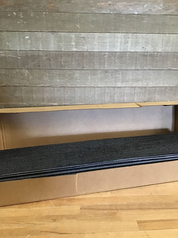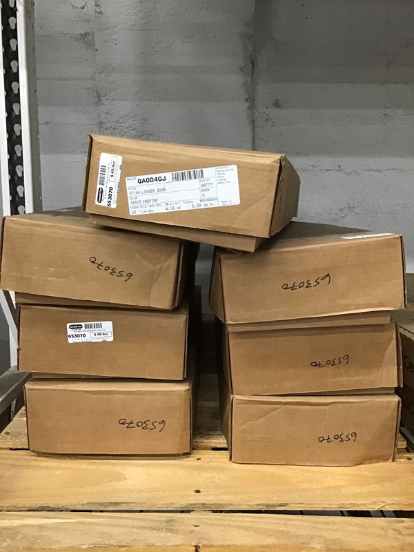 Box of twenty never-installed EcoWorx 9"x36" rectangular carpet tiles. Color is called "Inspire", which consists of various shades of grey and black. 45 total square feet.