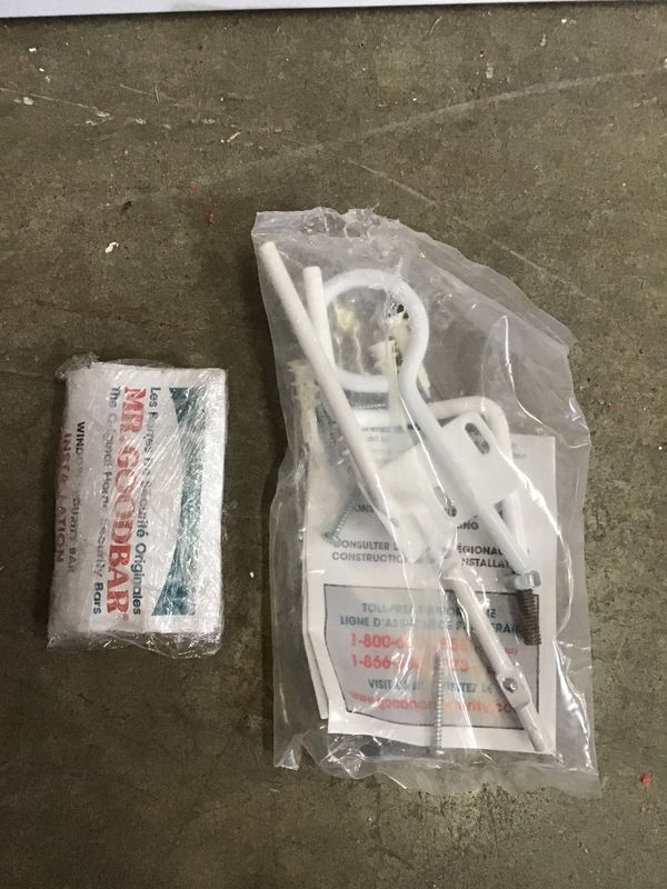 Mr. Goodbar security bars for a window. Looks like there is a bit of adjustability. Never installed. Has some hardware.