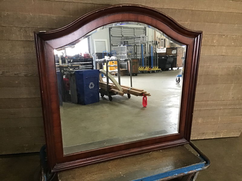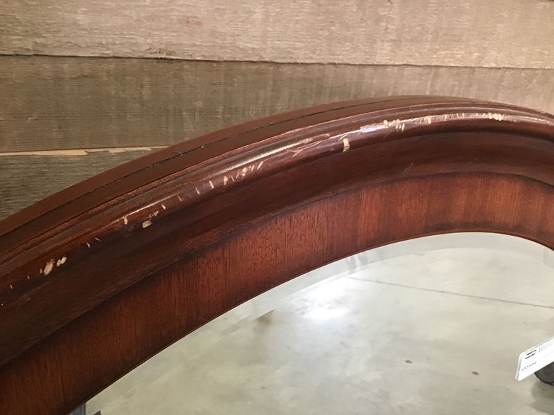 Beveled glass with Cherry stained frame. Has a few small scratches in the stain but can be touched up.
