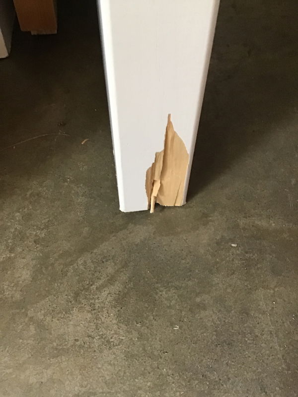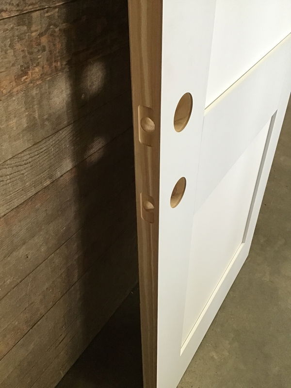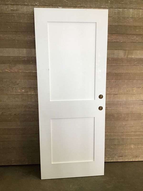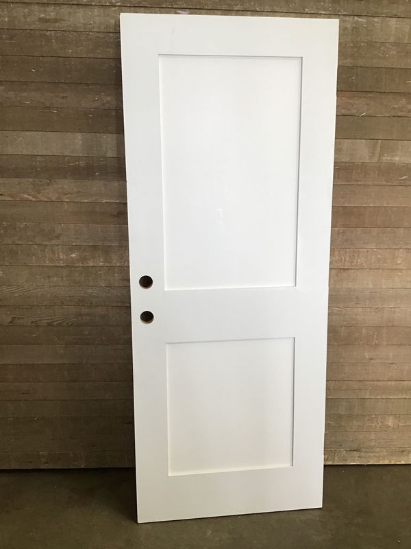 Masonite skin shaker style door. Has been cut down on one side but has not been installed before. In decent shape besides some scuffs and marks during handling. Has a chip at a bottom corner but is luckily hidden away on the hinge side.