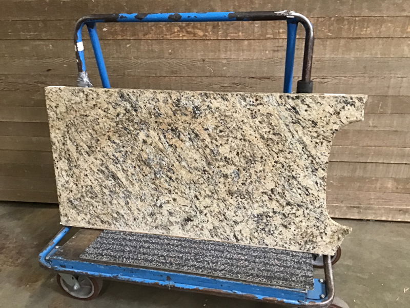 Granite slab chunk with 3 finished edges. Measurement taken after biggest useable rectangular dimension. Roughly 7.4SF. Has some chips along an edge and 3 finished edges.