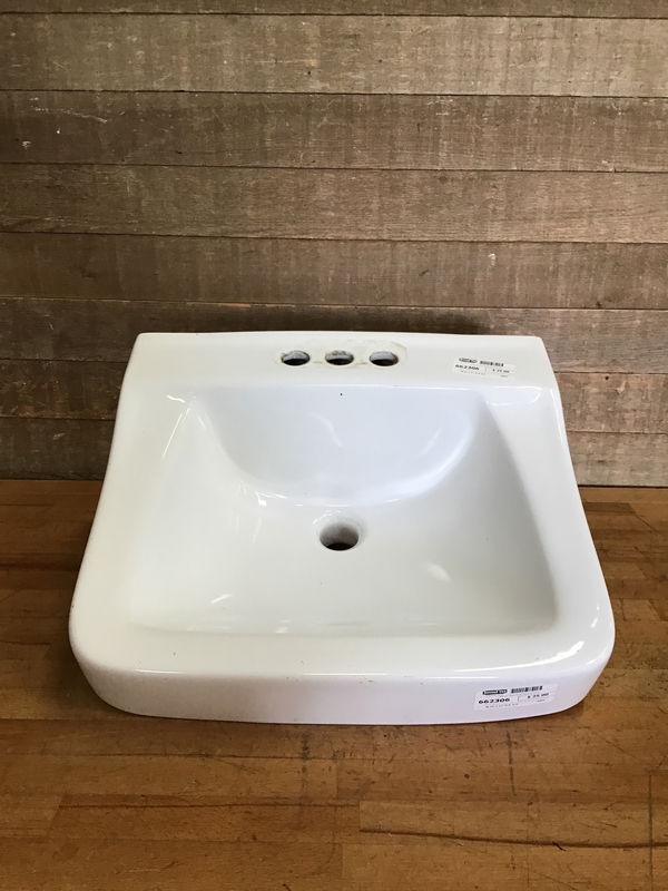 Glacier bay wall mount sink in white. Could use a good clean, but otherwise looks to be in usable condition!