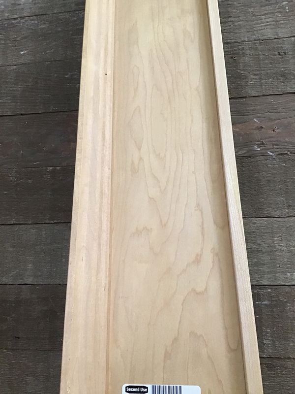 Prefinished Maple lintel. Solid trim with 3/4" cabinet ply back.
