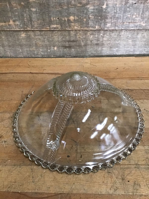 Vintage art deco clear 3-chain light shade with a beaded edge.
