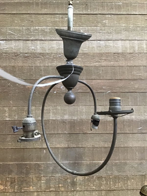 Antique hanging light fixture. Funky arms can hold 3 bulbs and glass shades. Needs rewiring and some love.