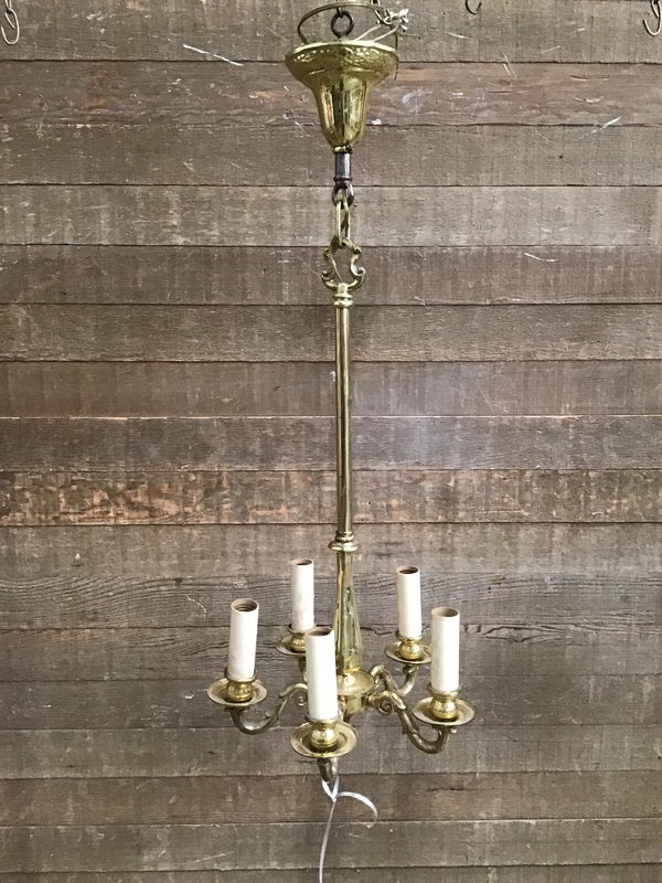 Antique 5-Arm Brass Chandelier
