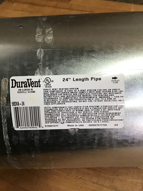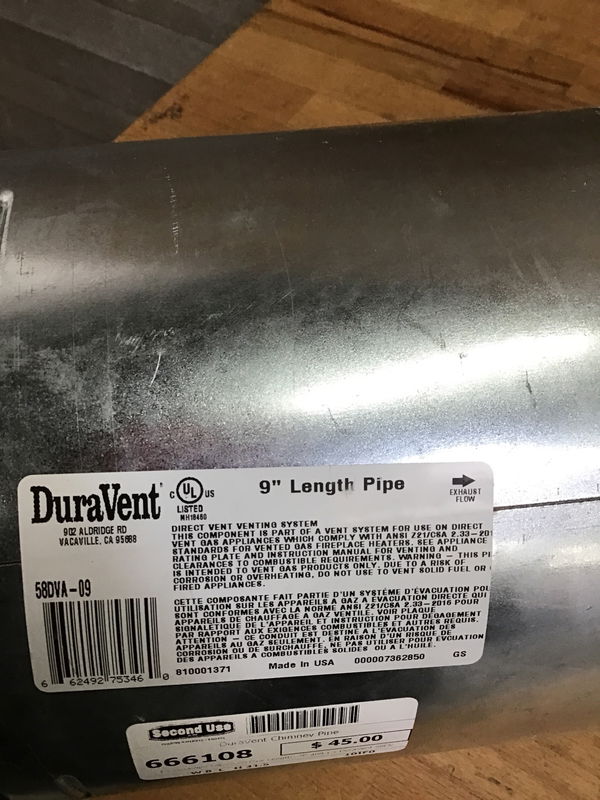 1 x DuraVent 58DVA-09 Pipe Length - 9" and 1 x DuraVent 58DVA-24 Pipe Length - 24." Looks like it might have been previously installed but still in awesome condition.