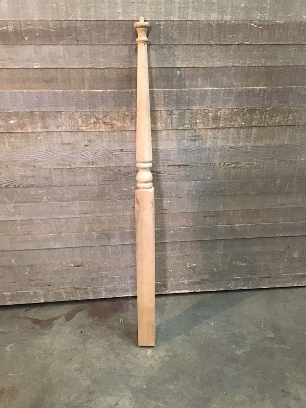 Unfinished newel post. May have minor cosmetic damage or cracks but in overall good shape and ready for your next stair or rail build.