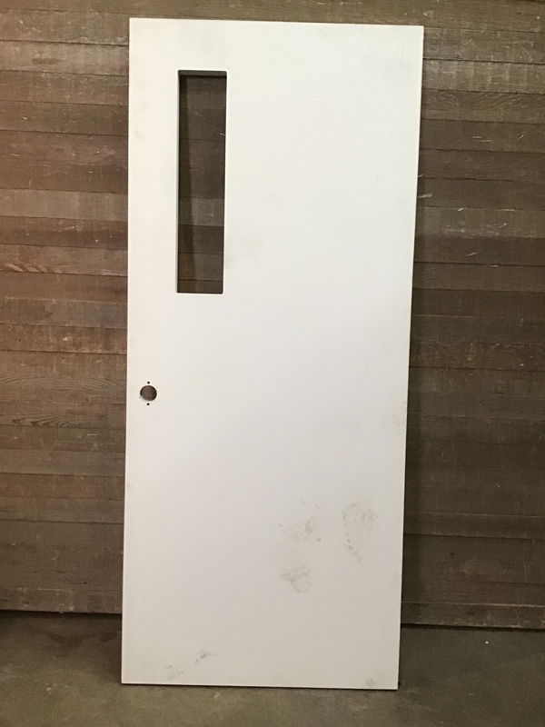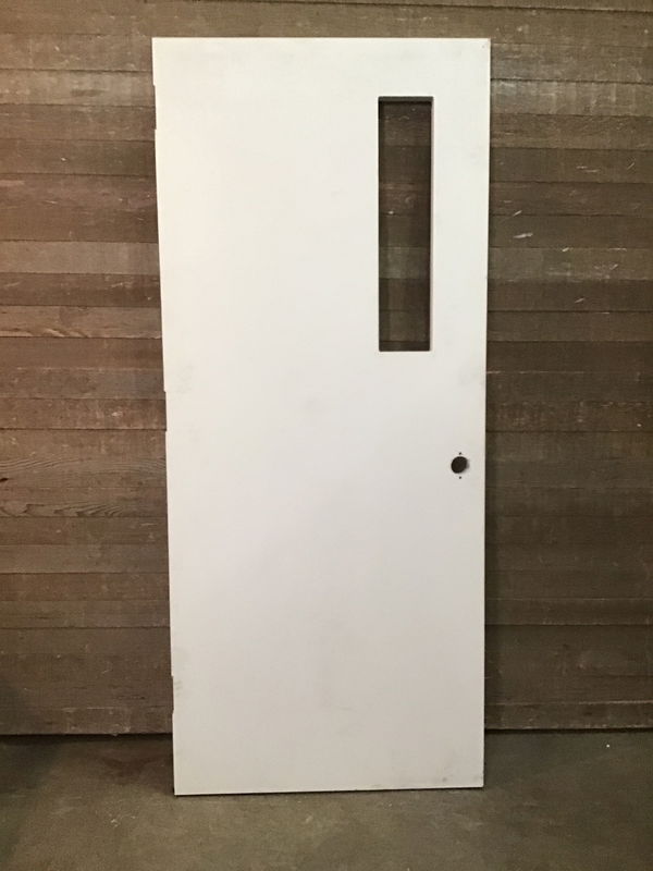 Heavy commercial door with a masonite veneer and a cutout for a narrow window (window not included). Appears to be in good condition.