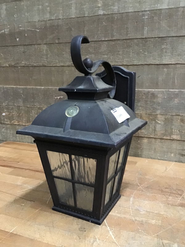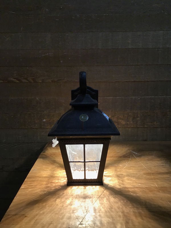 LED outdoor porch light in a cool brown finish and 4 ripples glass panels. A bit dusty from storage otherwise in excellent condition!