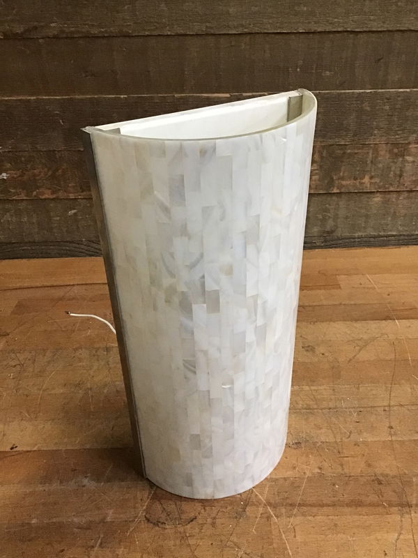 Wall washer sconce in good, used condition. Slip shade is made with light shells. Suitable for damp locations. Wiring looks to be in good condition. Photo may be representational.