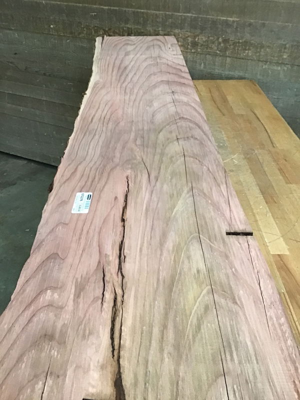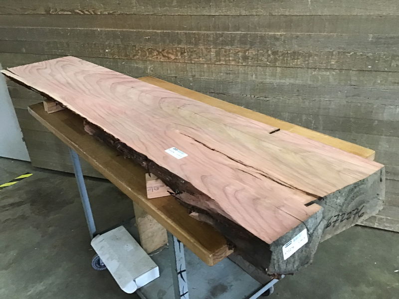 Locally milled and air dried 10+ years. Milled from an ornamental Sequoia that was taken down in West Seattle due to growing too big for it's surroundings. Planed flat on both faces. Has rich, pink color tone, and has a little bit of checking and a short chain saw notch on the straight back edge. Perfect for a mantel project. Tapers in width from 14" to 12"