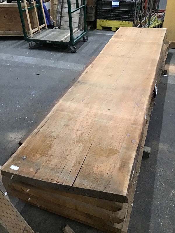 Locally milled and kiln dried. Old growth and very tight grain with only two very small knots..... a very old tree. Perfect slab for a giant banquet table of multiple bar tops. Tapers in width from 41" to 38". Has some checking but is a really sweet slab.