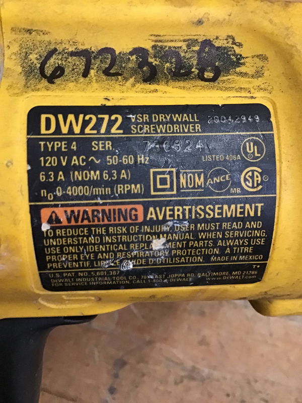 DEWALT VSR Drywall Screwdriver (DW272). Tested in house and appeared functional.