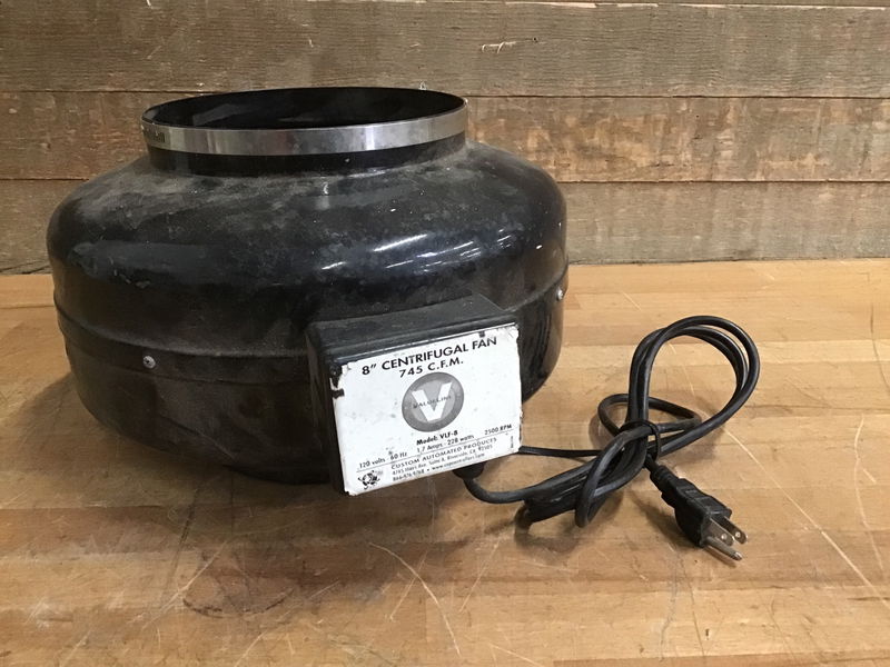 8" Centrifugal duct fan in good, used condition. Powered on in house and appeared fully functional.