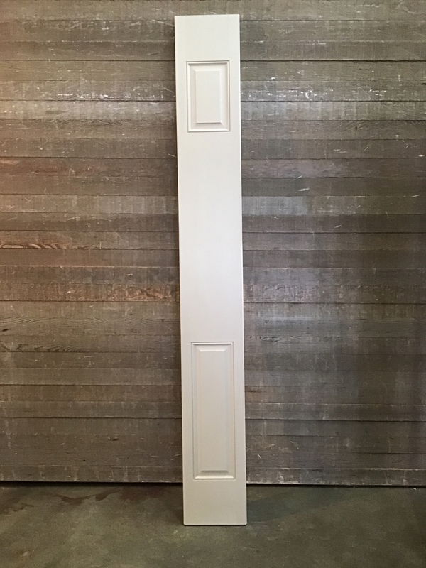 12" door side panel with a faux wood grain fiberglass veneer and two faux raised panels. There may be some minor cosmetic damage, but is in overall good condition.