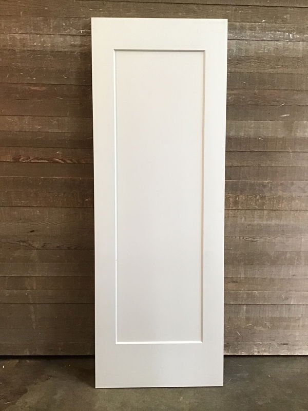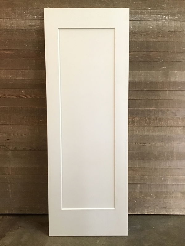 Never installed 7' tall shaker style single panel interior door with exterior thickness. 30" in width. No hinge or knob cuts. Some surface level water damage otherwise in good sturdy condition!