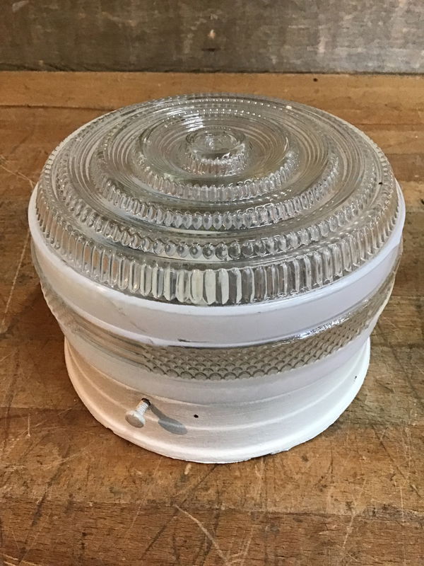 Small vintage cake light in good, used condition. Canopy is heavily painted. Will need a mounting bracket. Wiring looks original but in good condition, though we still recommend a full test prior to installation.