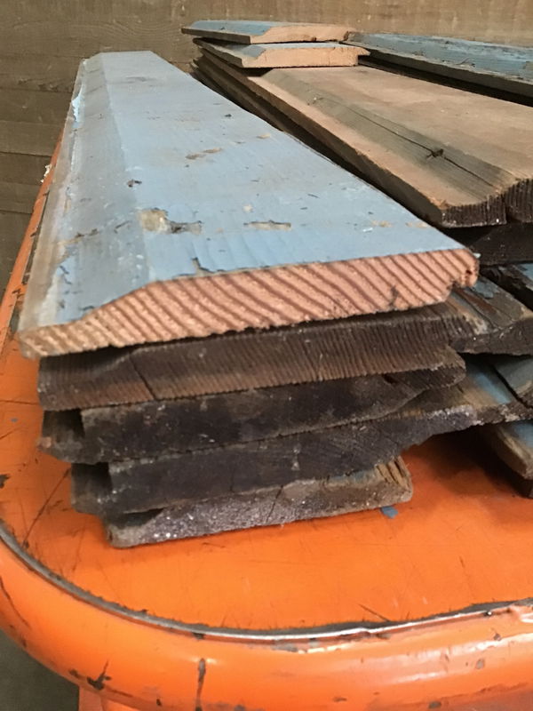 Lot approximately 50 Linear Feet of Cedar siding from an 1912s home in fair condition. There is some paint and wear present with a high amount of character. Tight grain with no knots and some checking, but overall in good shape. This would be great as siding for the best dog's dog house.