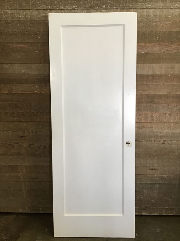 Vintage one panel door with a newer paint finish. Set up for an older style cylinder latch, but shouldn't be too hard to convert to modern cylinder latch.