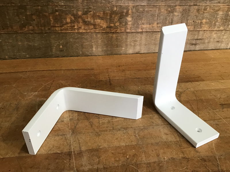 Set of 2 front mount countertop "L" brackets with a white finish by Iron Supports. These brackets are the 6" high by 8" deep and 0.5" thick steel. These sell new at about $35 a piece, see details here.