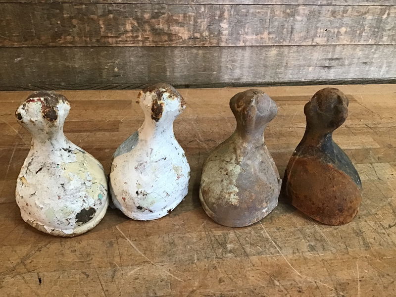 Set of four cast iron clawfoot tub feet. This set has tapered tabs that slide into the tub. Will look great after a wire brushing and polishing. Could also make interesting table legs.