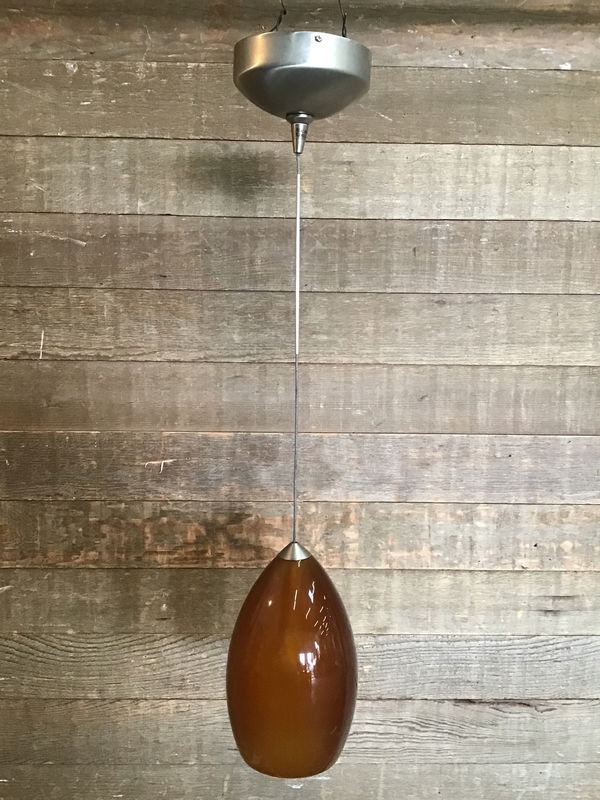 Pendant light fixture with amber glass shade. Previously installed but in good shape.
