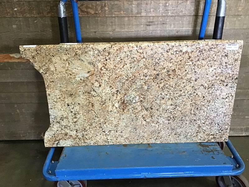 Roughly 7.5 usable square feet of Granite countertop with one bullnose edge, one flat finished edge, and one rough edge. There looks to be some steel supports that will need to be accounted for when cutting down. A good, usable junk for a small section of countertop or a bathroom vanity.