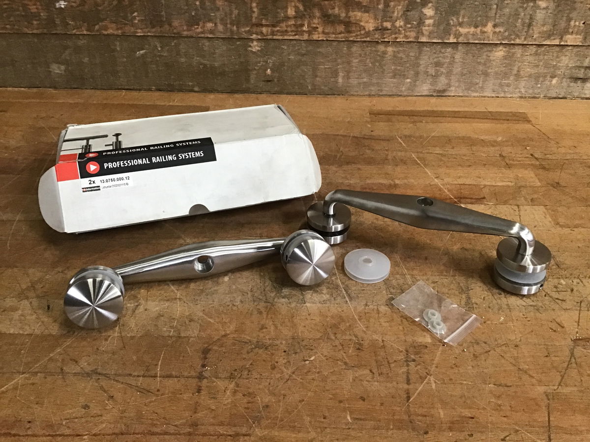 Two, heavy duty door pulls with a satin nickle finish. Never installed, in original box.