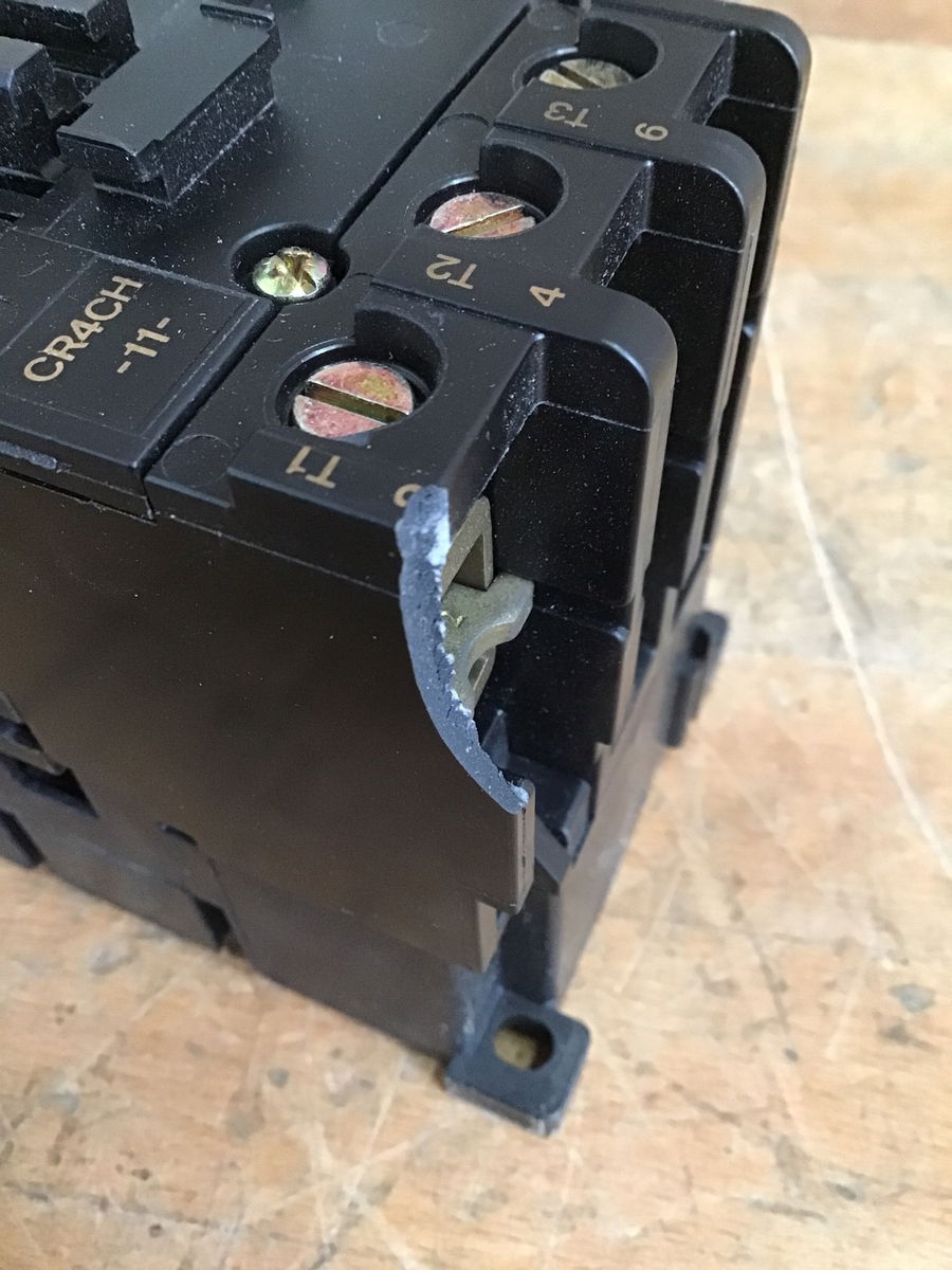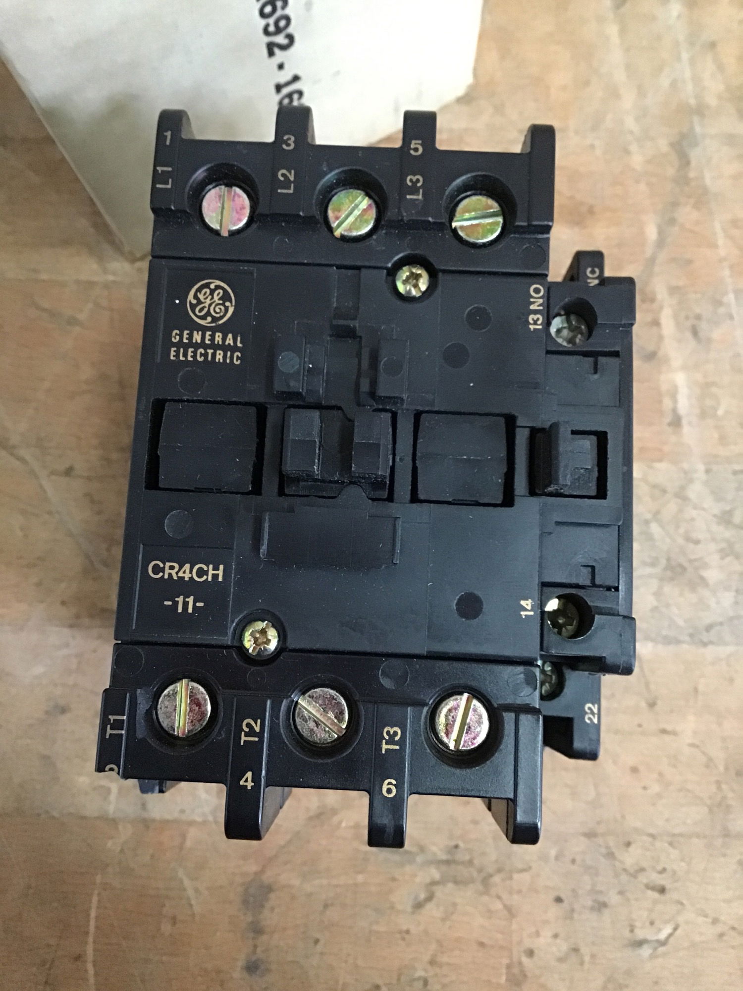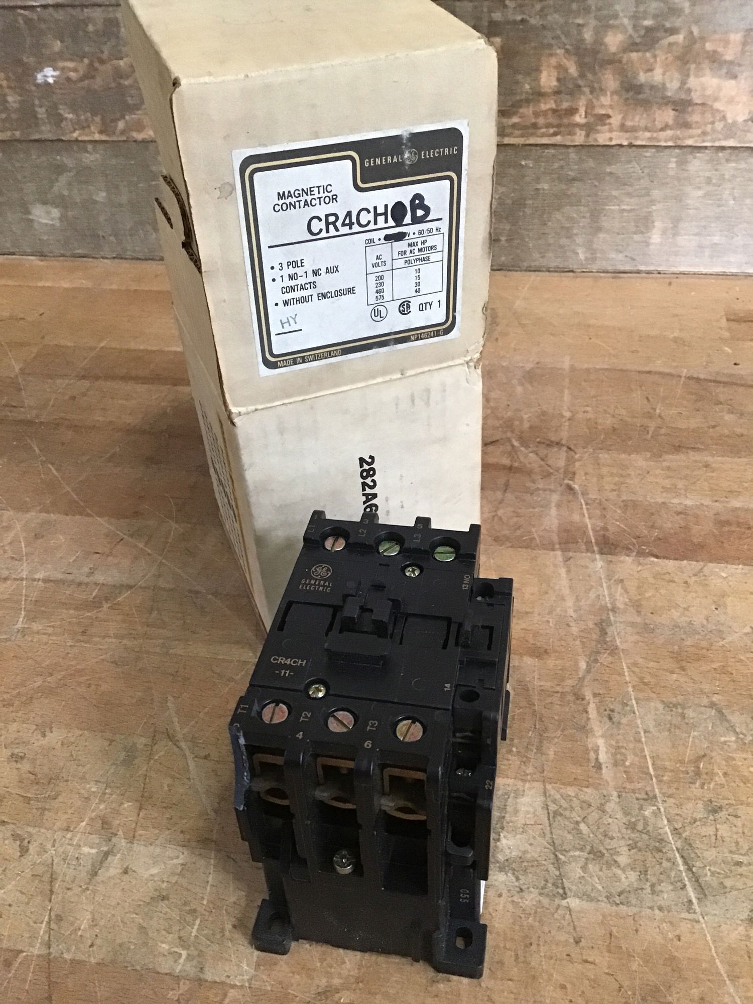 General Electric breaker model CR4CH. Comes in original box, looks to be in excellent condition, likely never installed. There is a small piece of plastic that has broken off, but it should affect functionality.