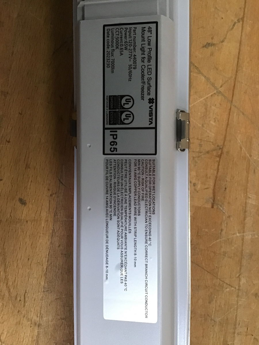 48" LED low profile, surface mount light that is freezer/cooler and outdoor safe. These sell new online for near $100 or more. Photo may be representational.  This is a bulk item. No holds please.