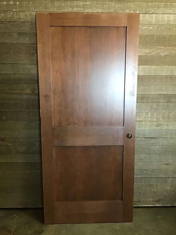 Great looking dark stained shaker style fir interior door. Has some minor cosmetic scuffs, scrapes and bumps but in good looking shape.